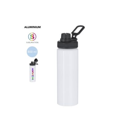 Bidón de 790 ml de capacidad, fabricado en acero inox y acabado con tacto goma, especialmente diseñado para marcaje en láser.