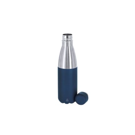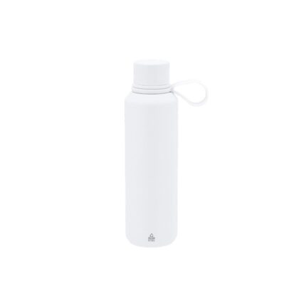 Bidón térmico de 630 ml de capacidad, fabricado en Acero Inox Reciclado de doble pared. Incluye asa de silicona a juego.
