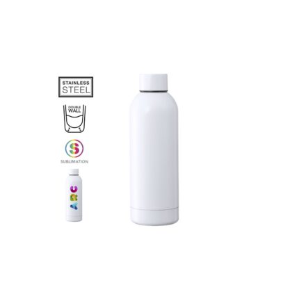 Bidón térmico de 500 ml de capacidad, fabricado en acero inox de doble pared y especialmente diseñado para marcaje en sublimación.