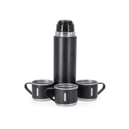 Tazas de 140ml, ajustables mediante rosca y en elegante diseño negro, ideales para disfrutar de la bebida, ya sea caliente o fría, en cualquier momento y lugar.
