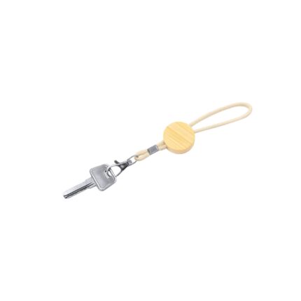 Llavero ecológico fabricado en bambú y con cordón en algodón.