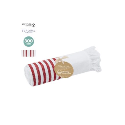 Suave pareo-toalla de 3000 g/m², confeccionado en una combinación de algodón reciclado y poliéster reciclado SEAQUAL.
