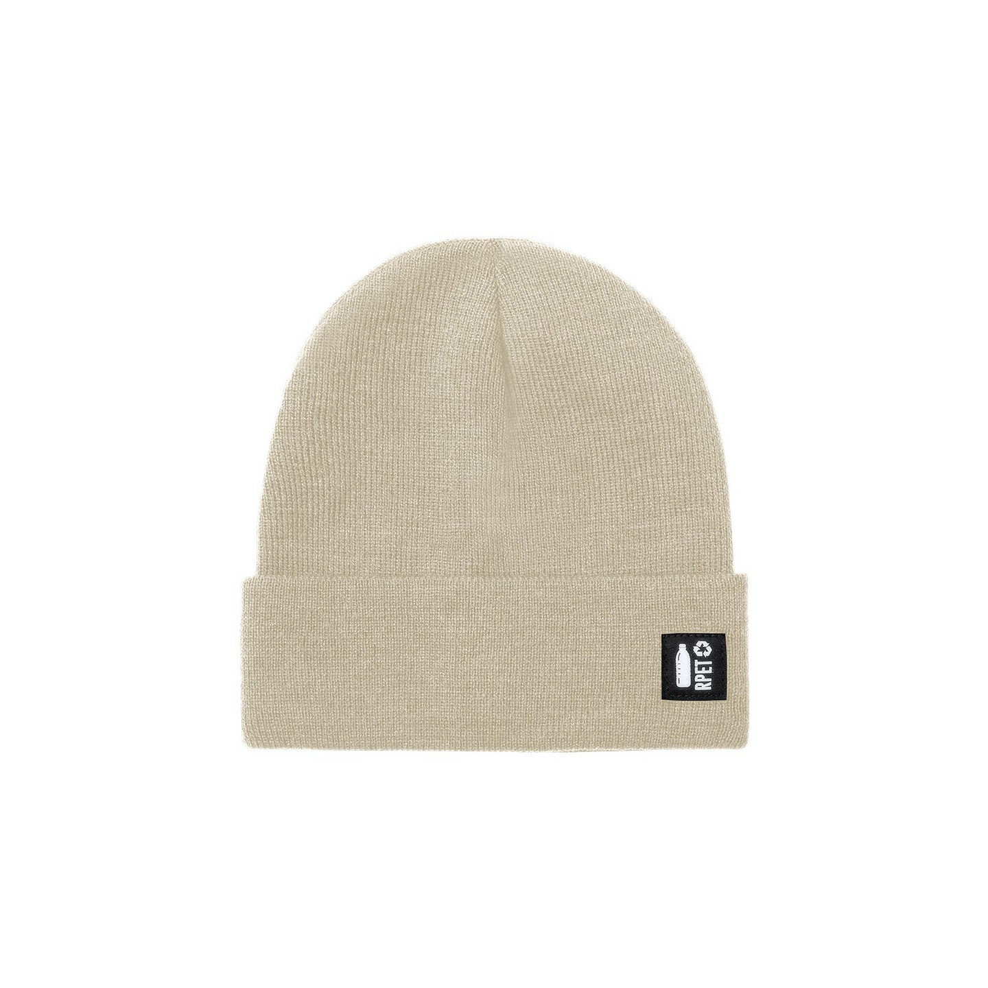 Suave y cálido gorro de punto de línea nature y en poliéster RPET, elaborado a partir de plástico reciclado para así fomentar la reutilización de residuos plásticos y contribuir a la sostenibilidad del planeta.