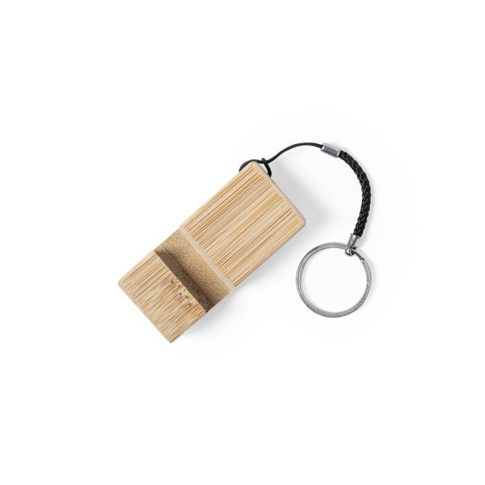 Llavero ecológico fabricado en bambú y con cordón en algodón.