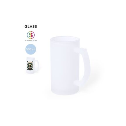 Tarro de sublimación con cuerpo fabricado en resistente cristal mate, con 400 ml de capacidad.