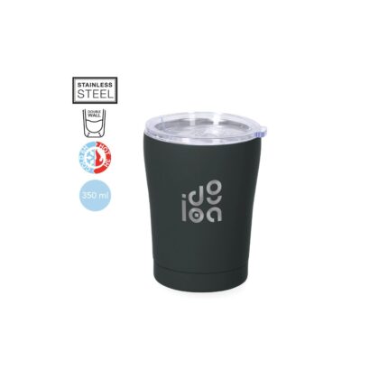 Vaso térmico fabricado en acero inox de doble pared y 350 ml de capacidad.