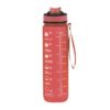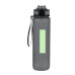 Con indicador de capacidad en litros y onzas, junto con frases motivadoras que invitan a mantener una adecuada hidratación. Con tapón negro de rosca. Incluye dosificador con cierre de seguridad y cómoda cinta de transporte. Libre de BPA.