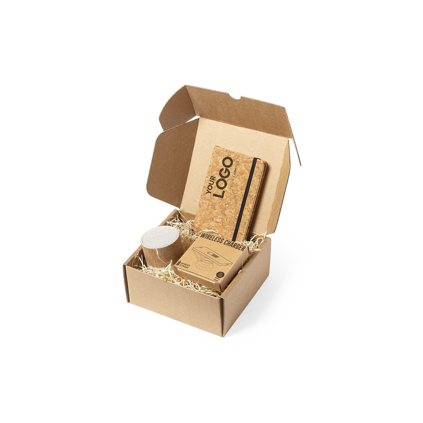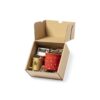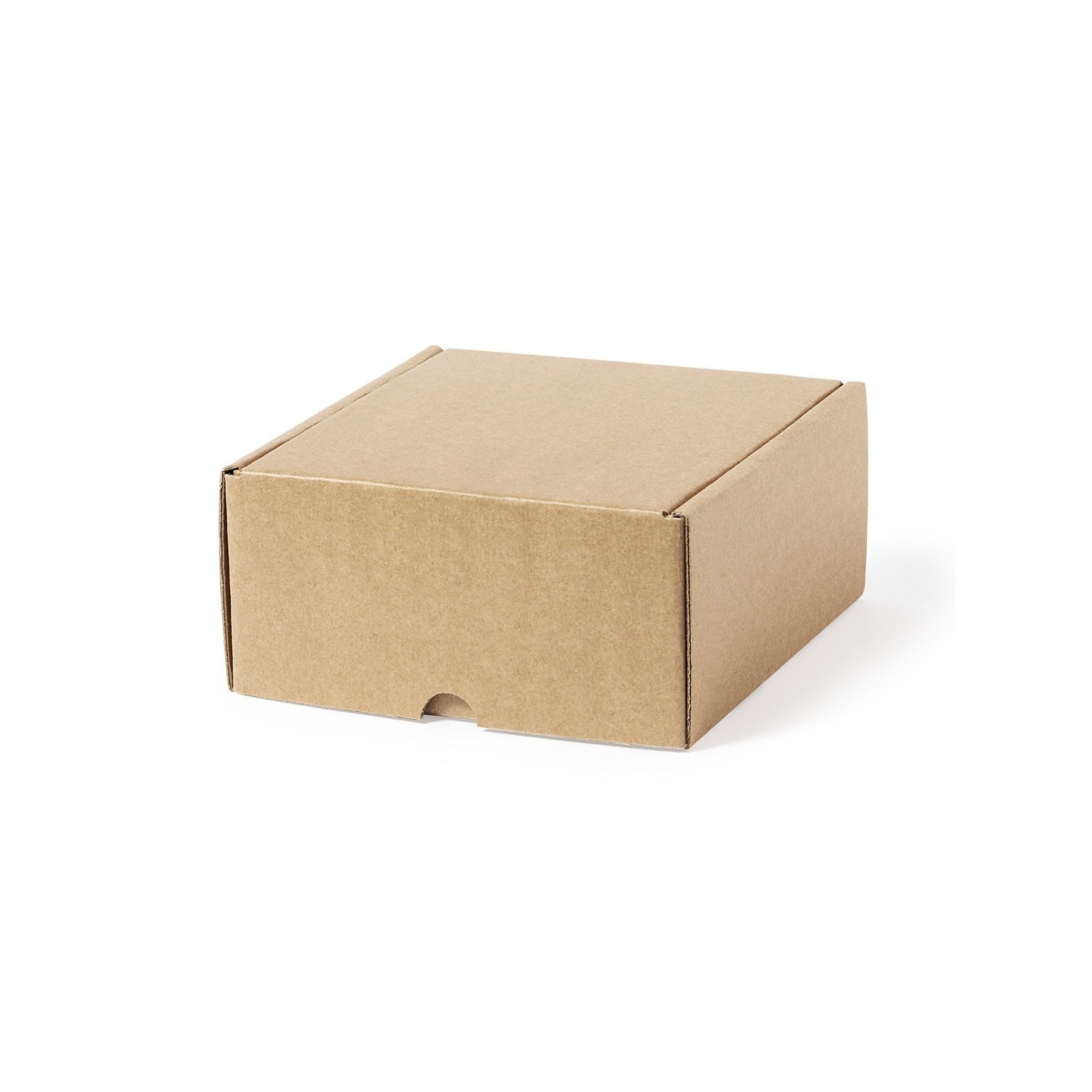Caja de presentación tamaño S, fabricada en cartón corrugado y acabado kraft.