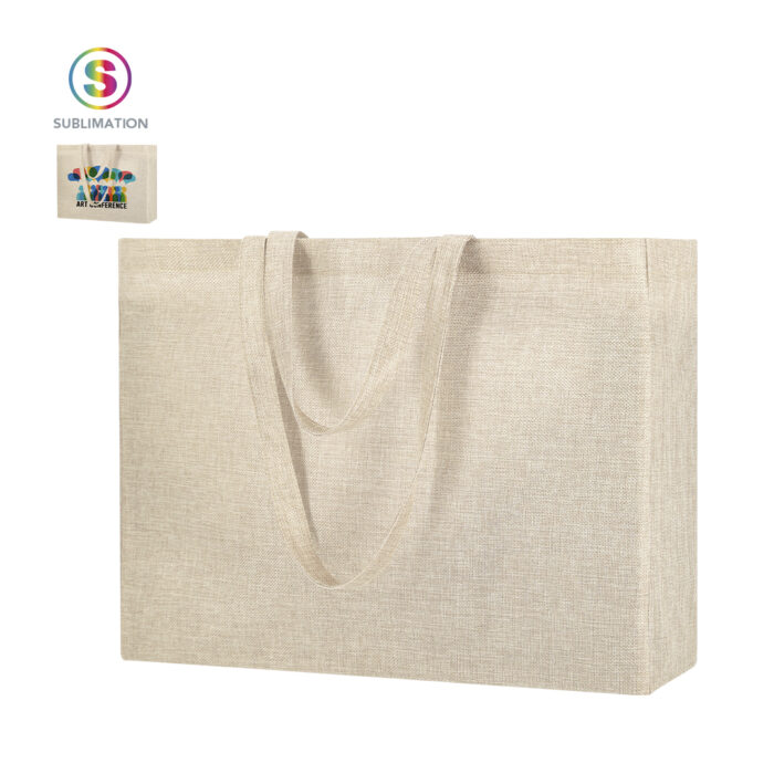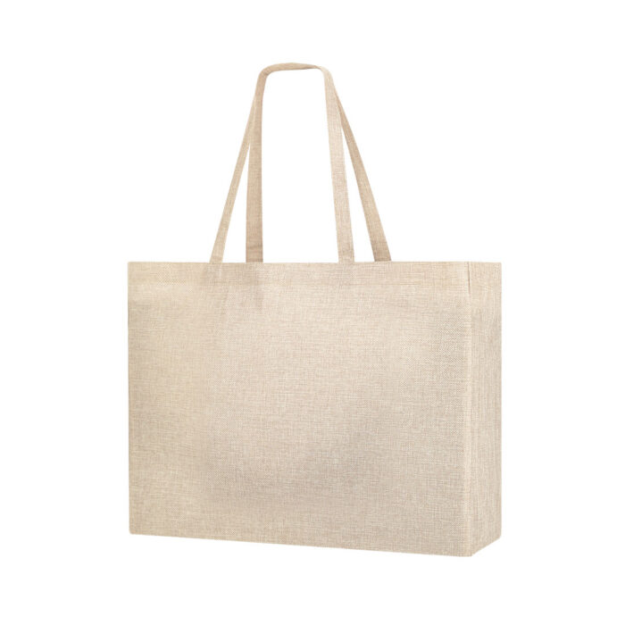 De acabado cosido, con fuelle en base y asas largas reforzadas (70 x 2,5 cm).