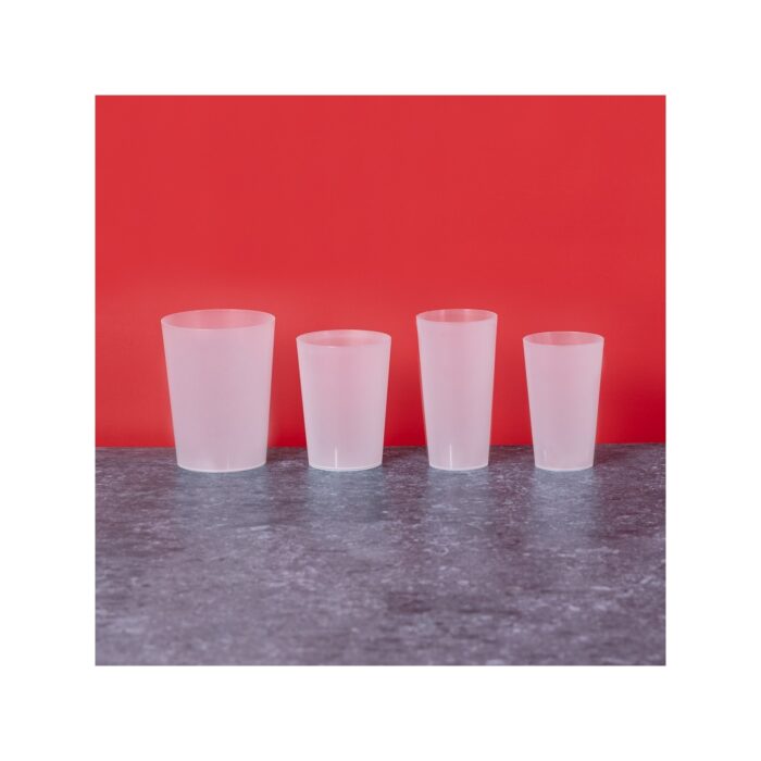 Con acabado translúcido mate y fabricado en resistente material PP.