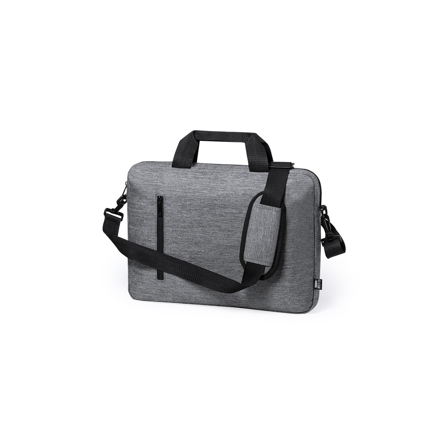Elegante portadocumentos de línea nature en resistente 600D RPET efecto melange, elaborado a partir de plástico reciclado para así fomentar la reutilización de residuos plásticos y contribuir a la sostenibilidad del planeta.