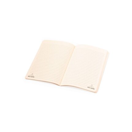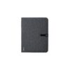 - Bloc de notas con tapas blandas fabricado en elegante PU color negro. Su diseño combina texturas lisas y biseladas. Incluye marcapáginas de tela con accesorio metálico especial para marcaje en láser. Interior con 100 hojas en color crema, de disposición a una raya y bordes en negro.