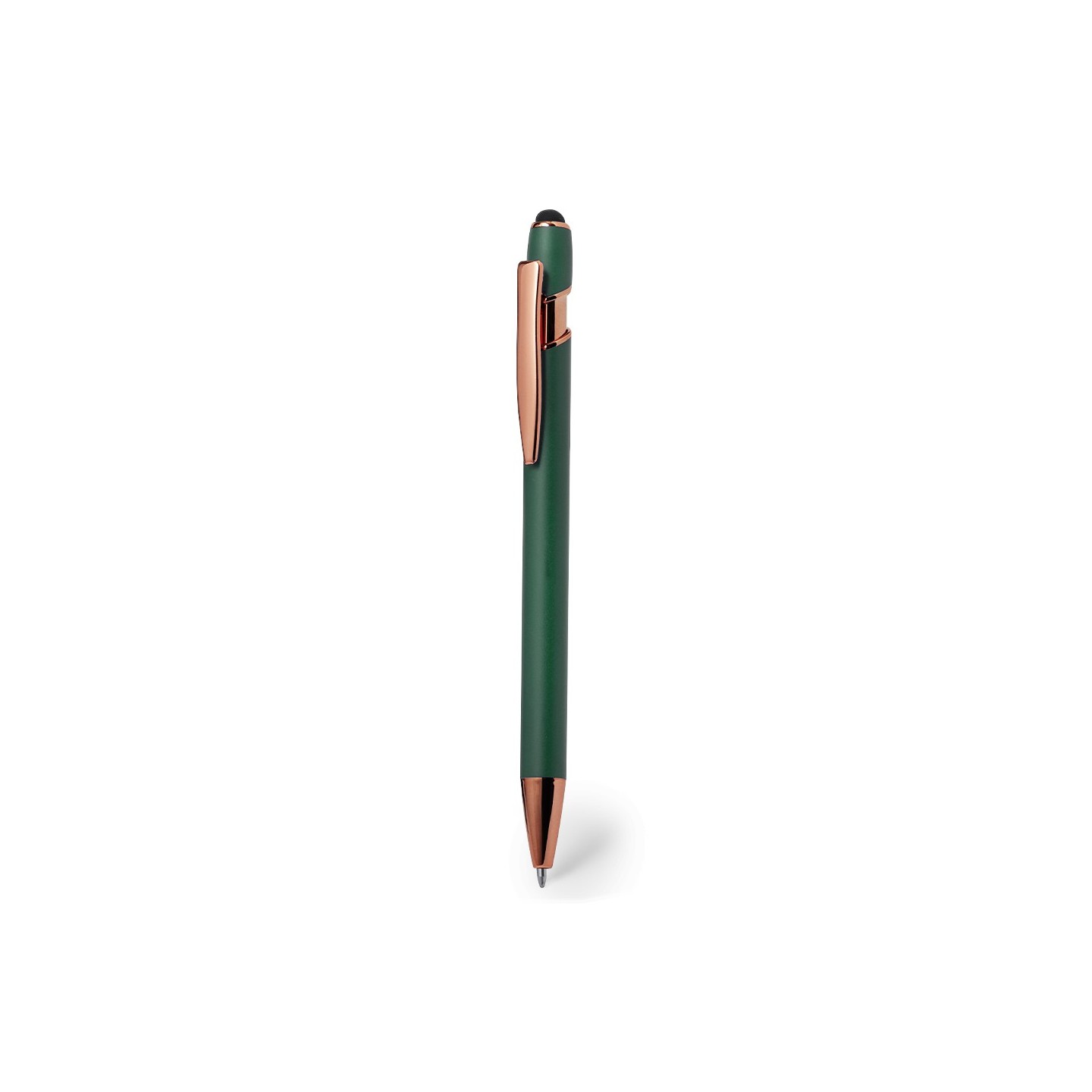 Excelente bolígrafo puntero de aluminio con mecanismo pulsador.