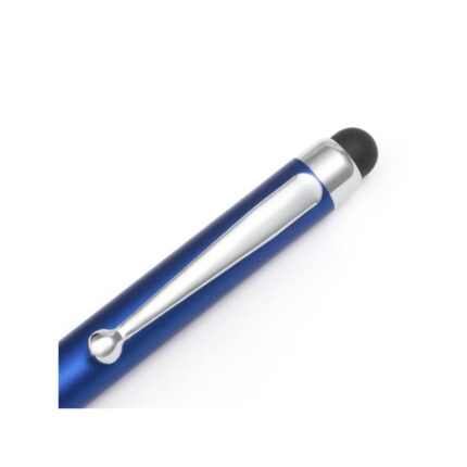 Clip metálico, con mecanismo giratorio y en tinta azul.