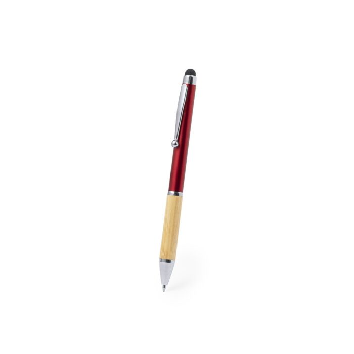 Cuerpo en acabado brillante y empuñadura en bambú con puntero en la parte superior en negro, con la caña en una amplia gama de distintivos colores metálicos.