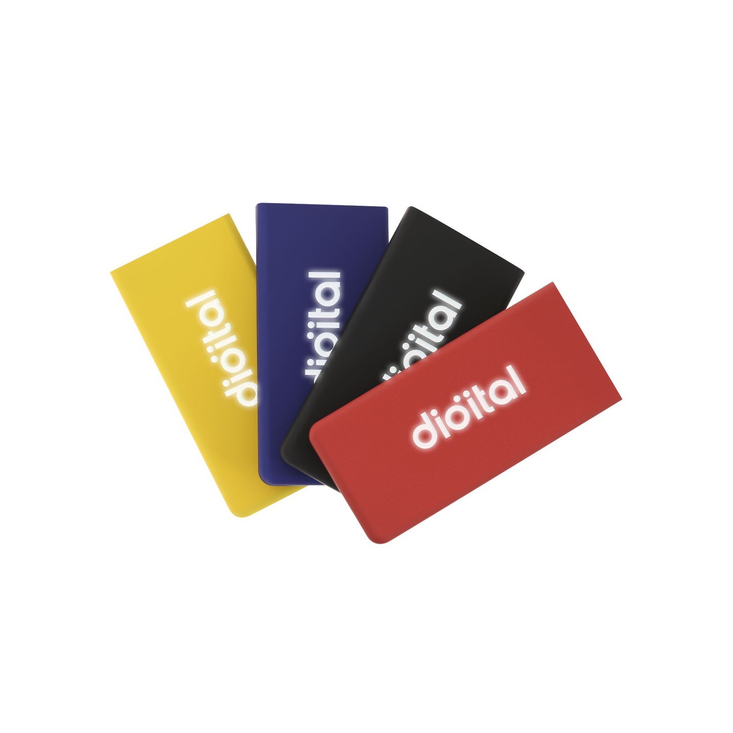 Batería auxiliar externa en ABS con acabado gomoso y 5.000 mAh de capacidad de carga.